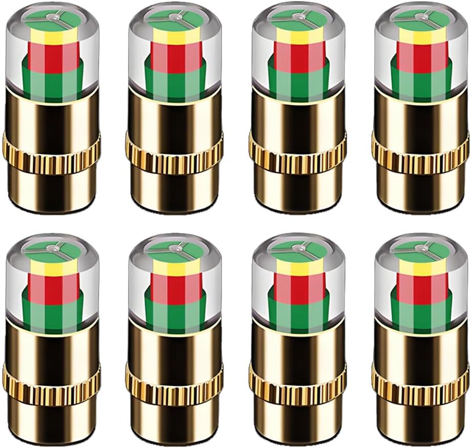 High Quality -- Material of car tire pressure indicator caps made of stainless steel with a built-in copper chrome plated core for extra durability, Visually alerts you when the tire pressure is low.