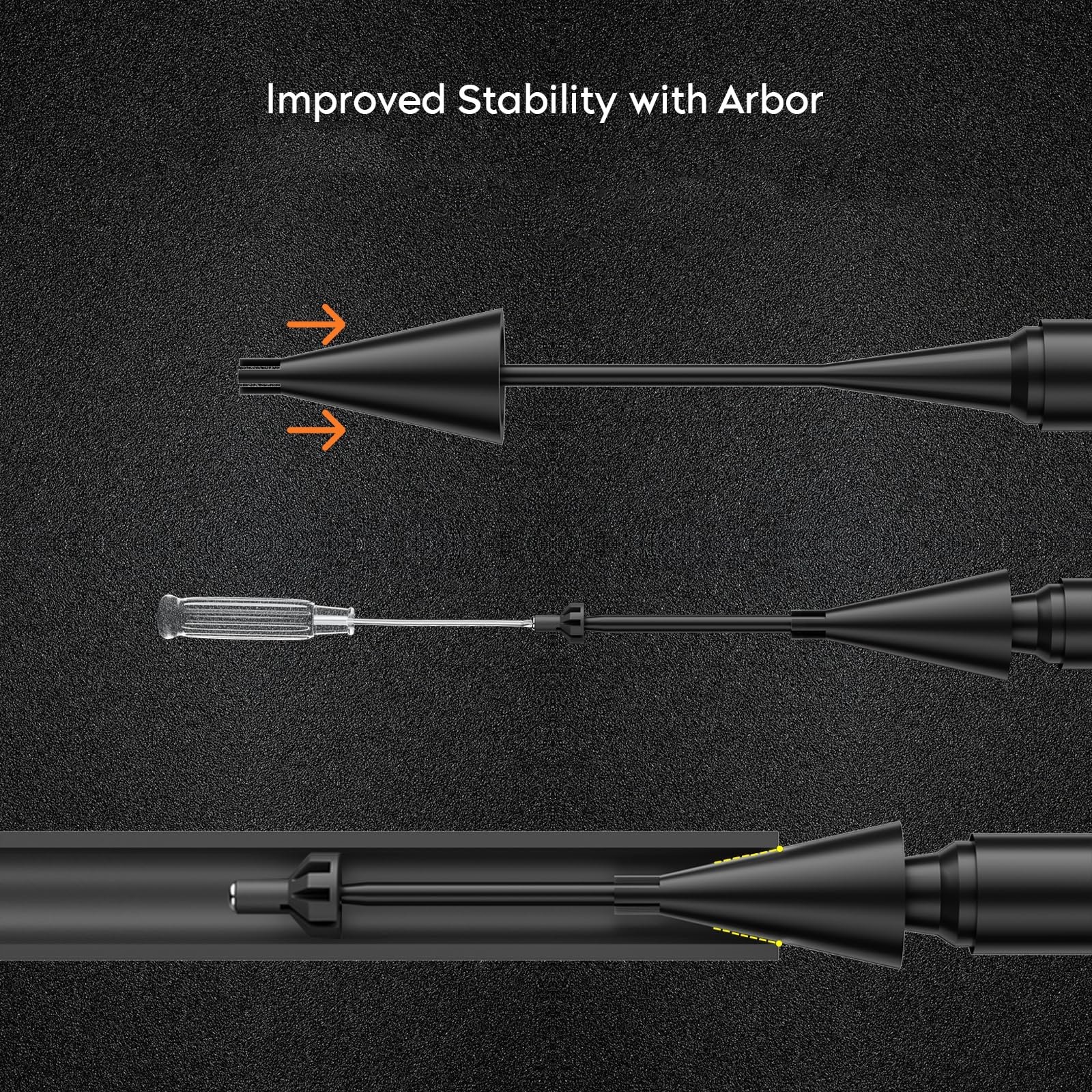 Dual-point arbor system locks into barrels with 2X more contact surface vs. competitors. No wobble. No drift. Just dead-on alignment.